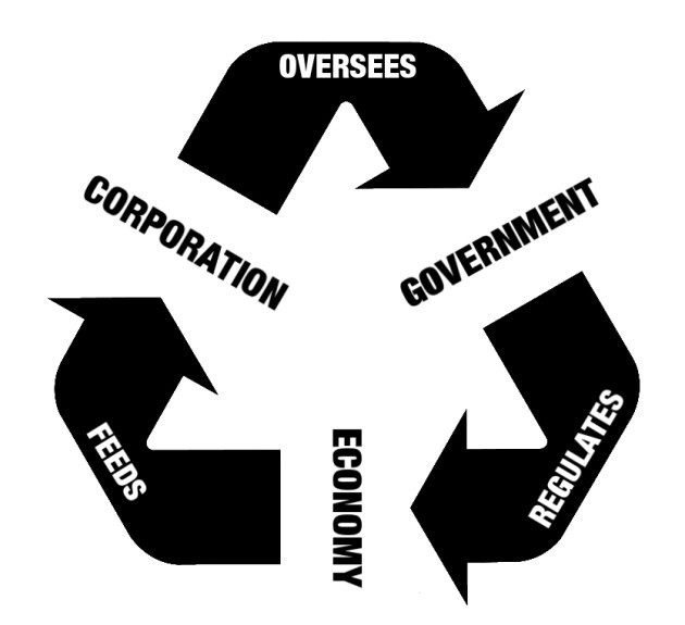 There is a close and incestuous relationship that keeps the industrial world functioning at a global scale. The three main players in this relationship are governments, corporations and the economic system. Two of those things are most definitely tangible, i.e. they can be described in physical terms; these two are the corporations, of which there are many, though only a relative few which wield genuine power, and the governments. The governments do not actually comprise the majority of politicians; it is the superstructure of government we are talking about: presidents, prime ministers, cabinet members, high-level advisors and spin-doctors, the judiciary, the military and the senior civil service make up the bulk of this. The economic system, while having tangible elements, such as trading floors and banks, is more ethereal. It is best described as a paradigm. It brings within its realm things such as policies and rules of operation; it forms part of our culture; it embraces belief systems, faith, the hearts and minds of society itself. Never underestimate the importance of the economy in civilized society.